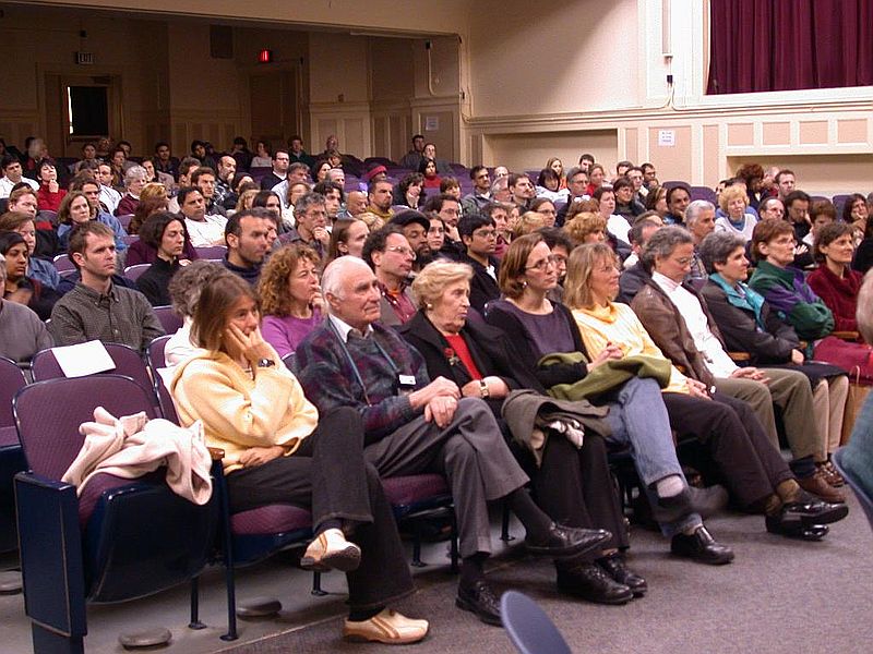 Goenkaji gave an open question and answer session in the meditation hall. The