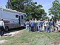 Caravan stopped at the Ole Town Cotton Gin RV Park. One of the Dhamma Workers